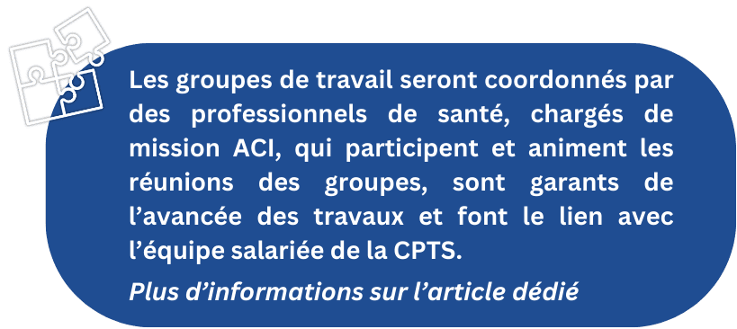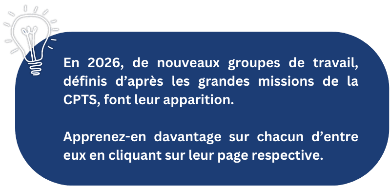 ← Retourner vers les groupes de travailProfessionnels de santé, devenez "chargé de mission ACI" pour la CPTS MA en 2026Le conseil d'administration de la CPTS propose la création de 6 postes de chargé de mission ACI. Votre rôle sera de : participer et animer les...